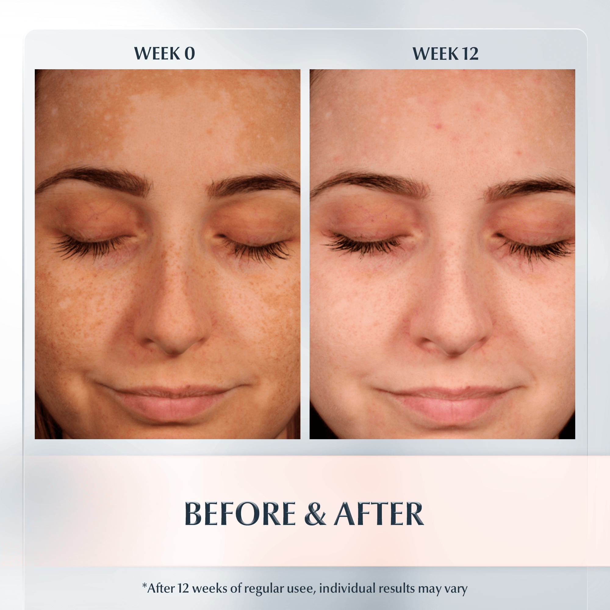 Melanin is a natural pigment that gives color to skin. Exposure to sunlight, hormonal influences and aging can cause an increase in melanin production and trigger hyperpigmentation. Hyperpigmentation appears as dark patches and age spots (also known as sun spots) that make skin look uneven.