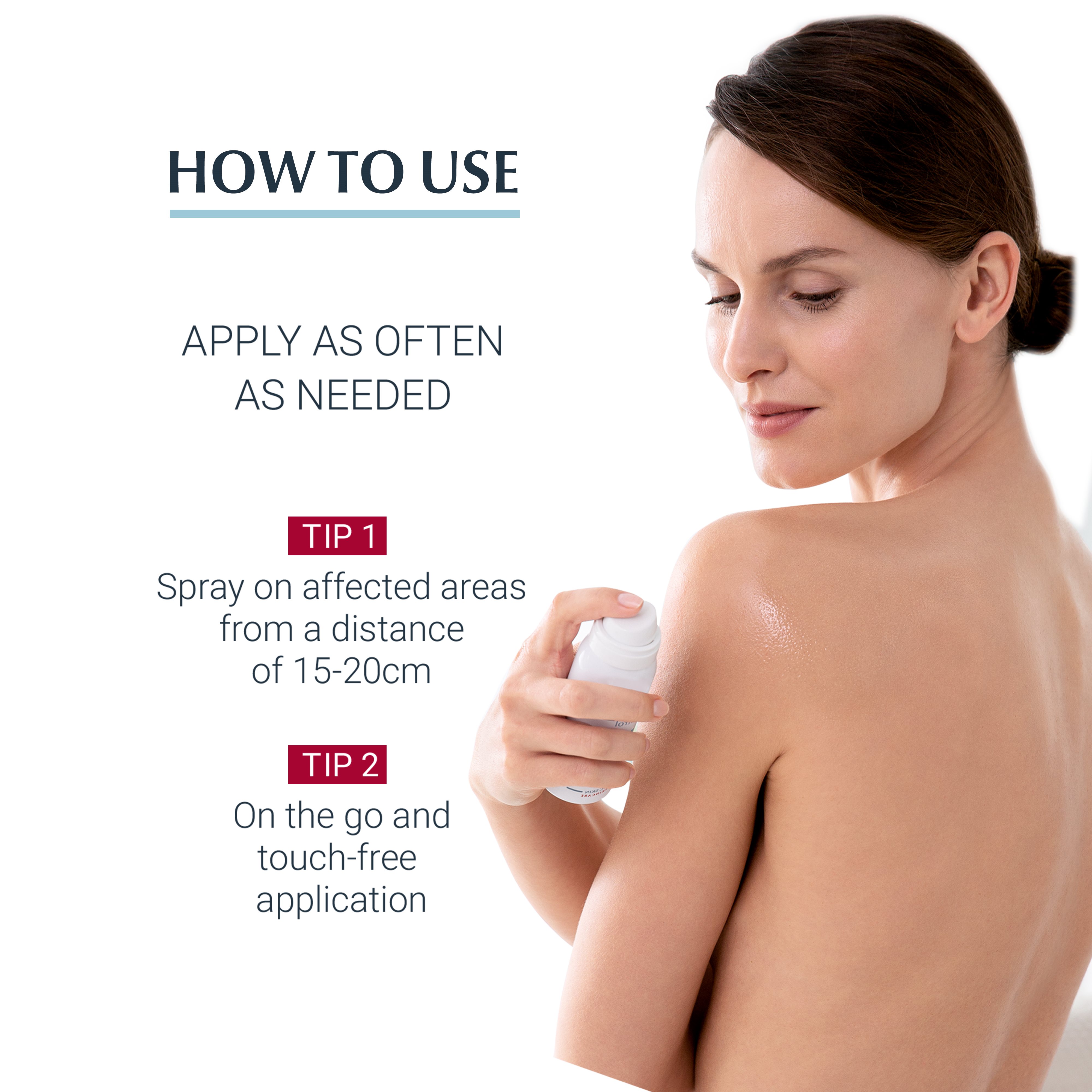 Eucerin AtopiControl Anti-Itch-Spray instantly cools skin, reducing itching within 60s. Use it to provide immediate and long-lasting relief whenever your skin is itchy – either during a flare-up of Atopic Dermatitis or in the periods between. As it’s not a care product, we recommend you use it in combination with other products in the AtopiControl range. Eucerin AtopiControl Anti-Itch-Spray is also effective on skin that is itchy as a result of Xerosis, Psoriasis and Diabetes.