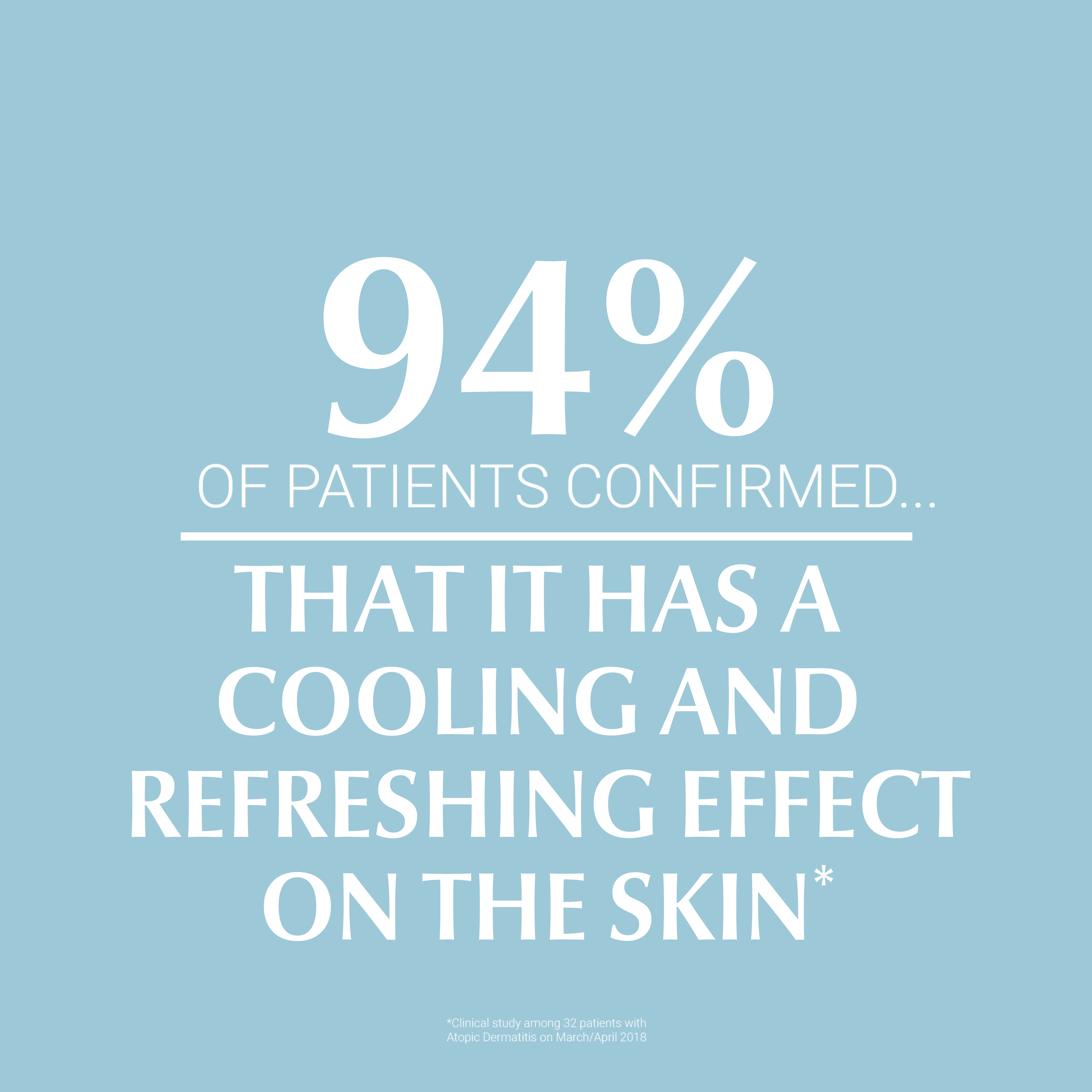 Among other clinical and dermatological studies, a clinical study1 was conducted with 32 patients with Atopic Dermatitis who regularly suffer from itchy skin. After applying the spray twice daily for two weeks 94% confirmed that it ‘has a cooling and refreshing effect on the skin’.