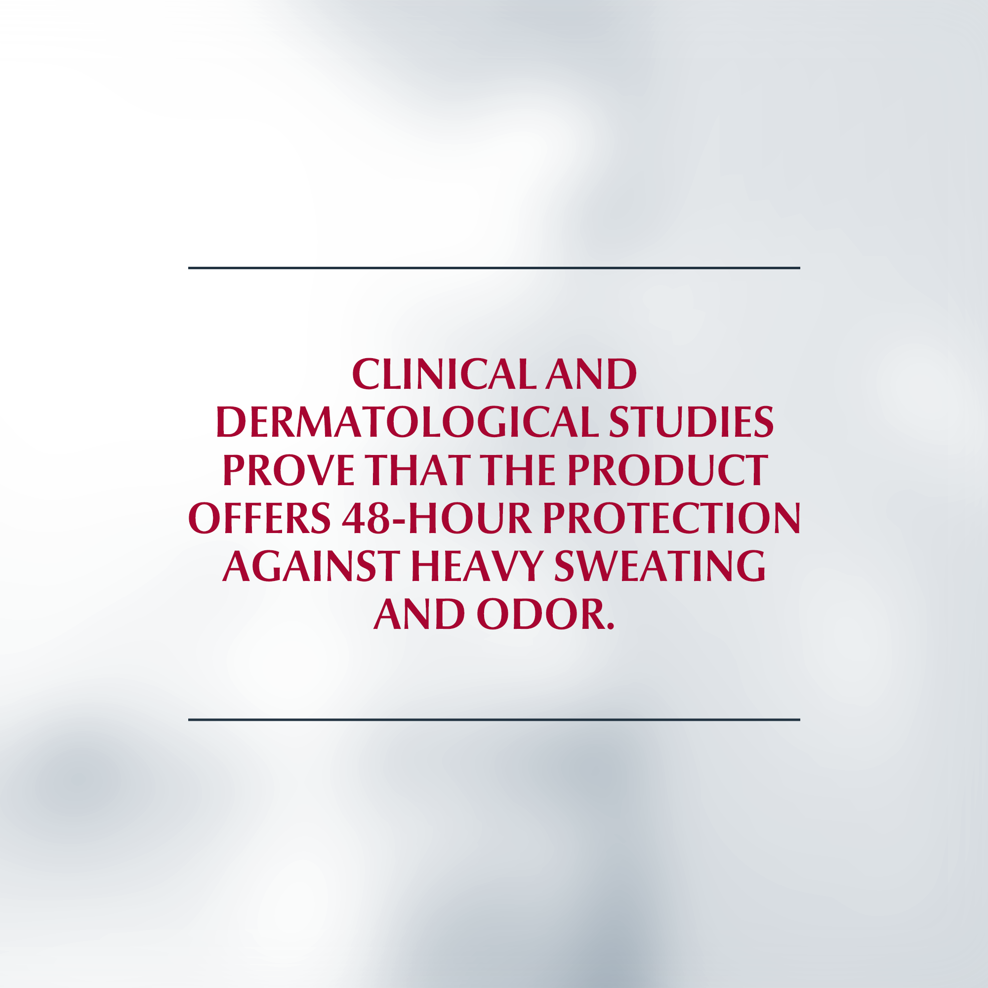 Clinical and dermatological studies prove that the product offers 48-hour protection against heavy sweating and odor.