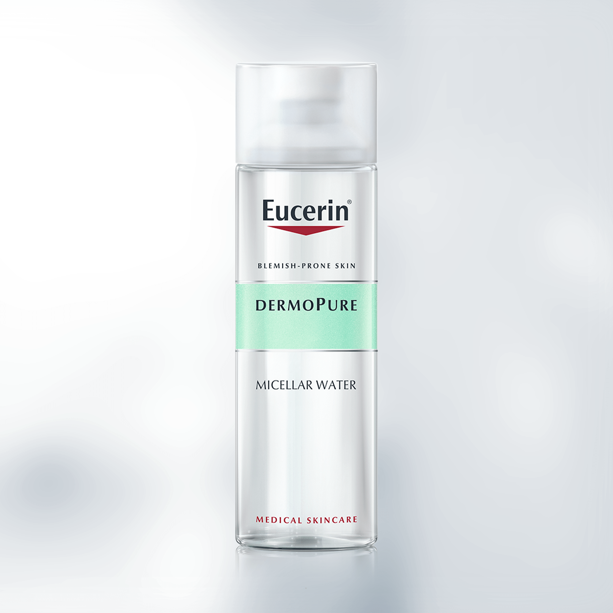 Eucerin DERMOPURE Micellar Water is a refreshing solution with APG Complex: an effective yet extra-mild make-up remover, cleanser and toner.