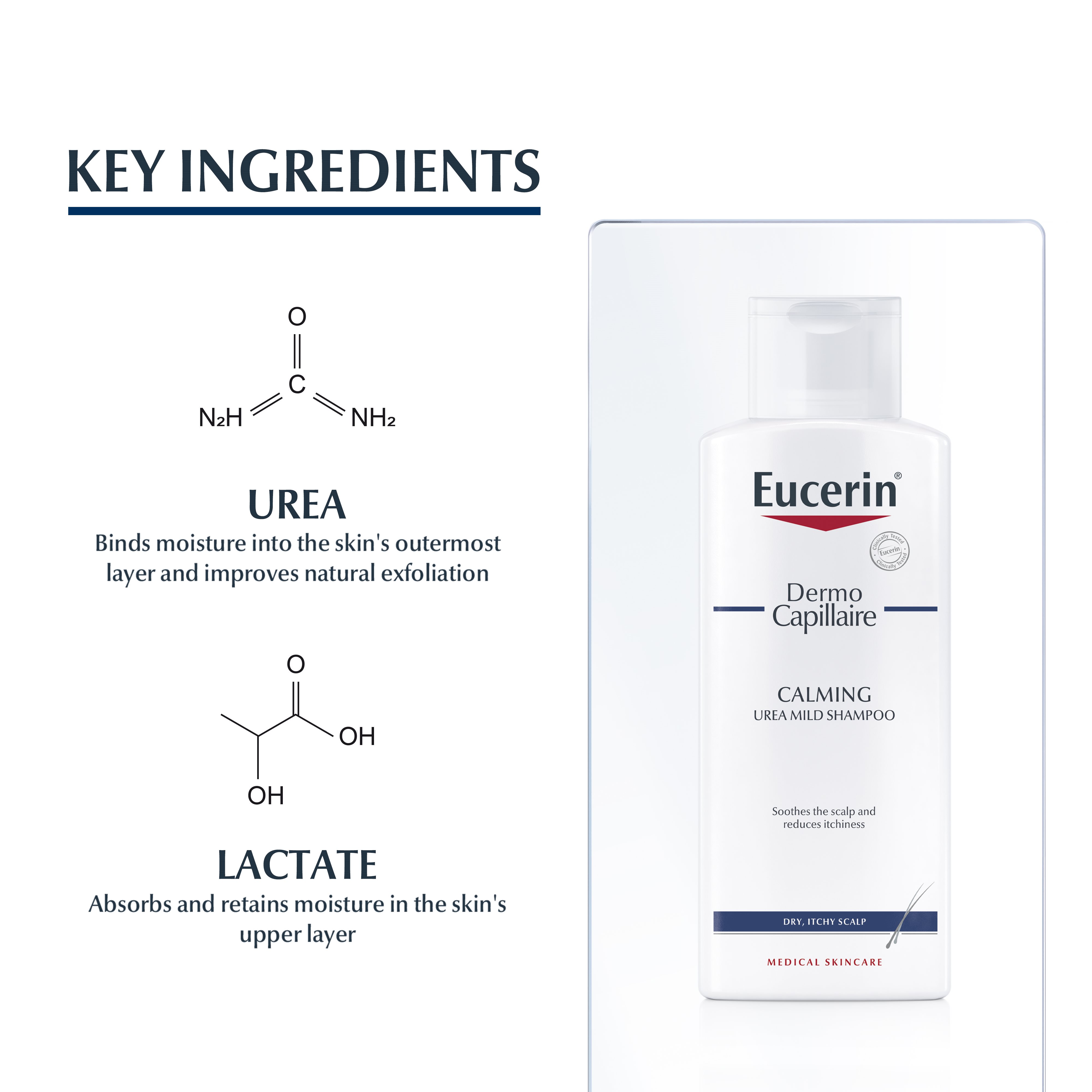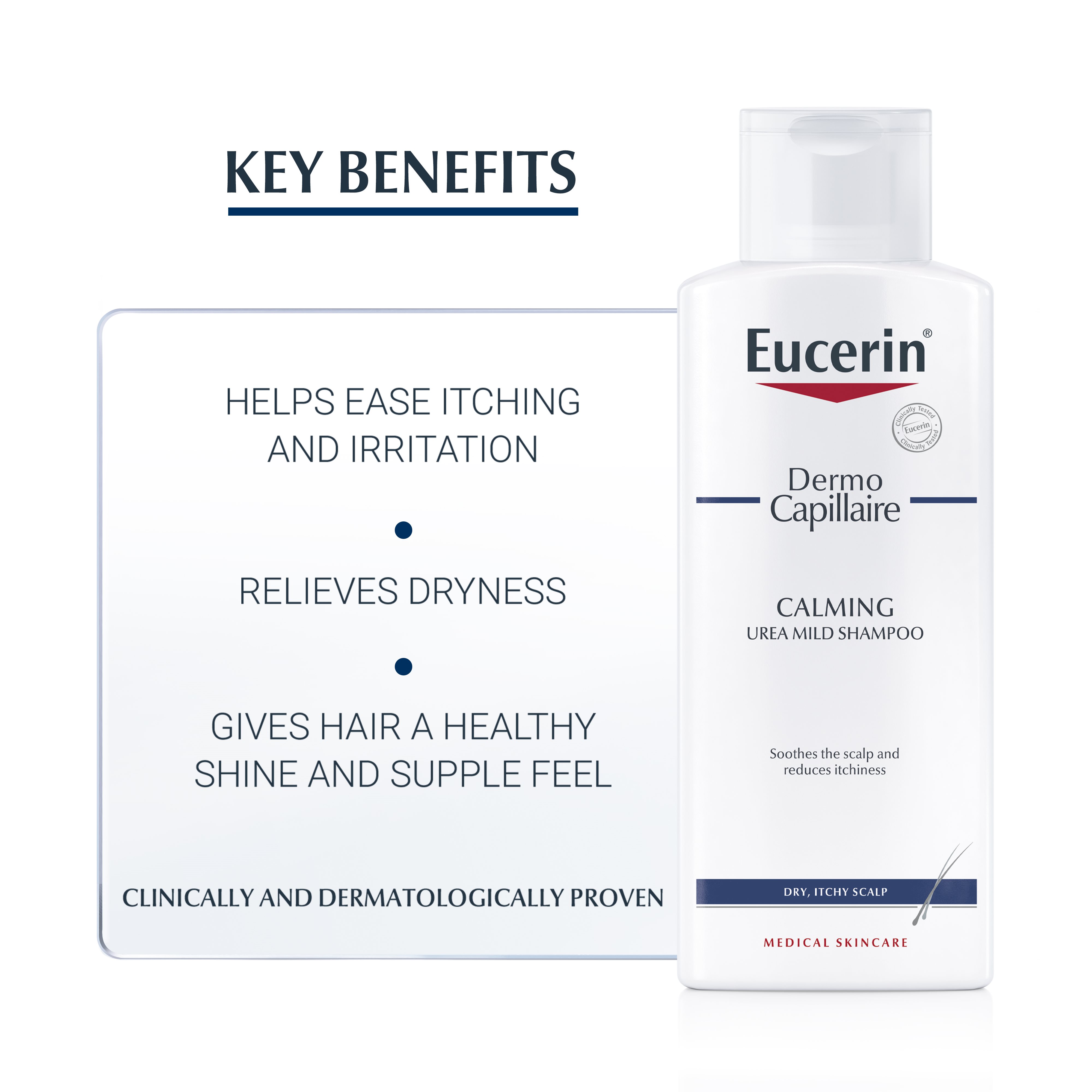 - You have a dry and itchy scalp: Eucerin DermoCapillaire Calming Urea Shampoo helps reduce moisture loss while soothing itching.