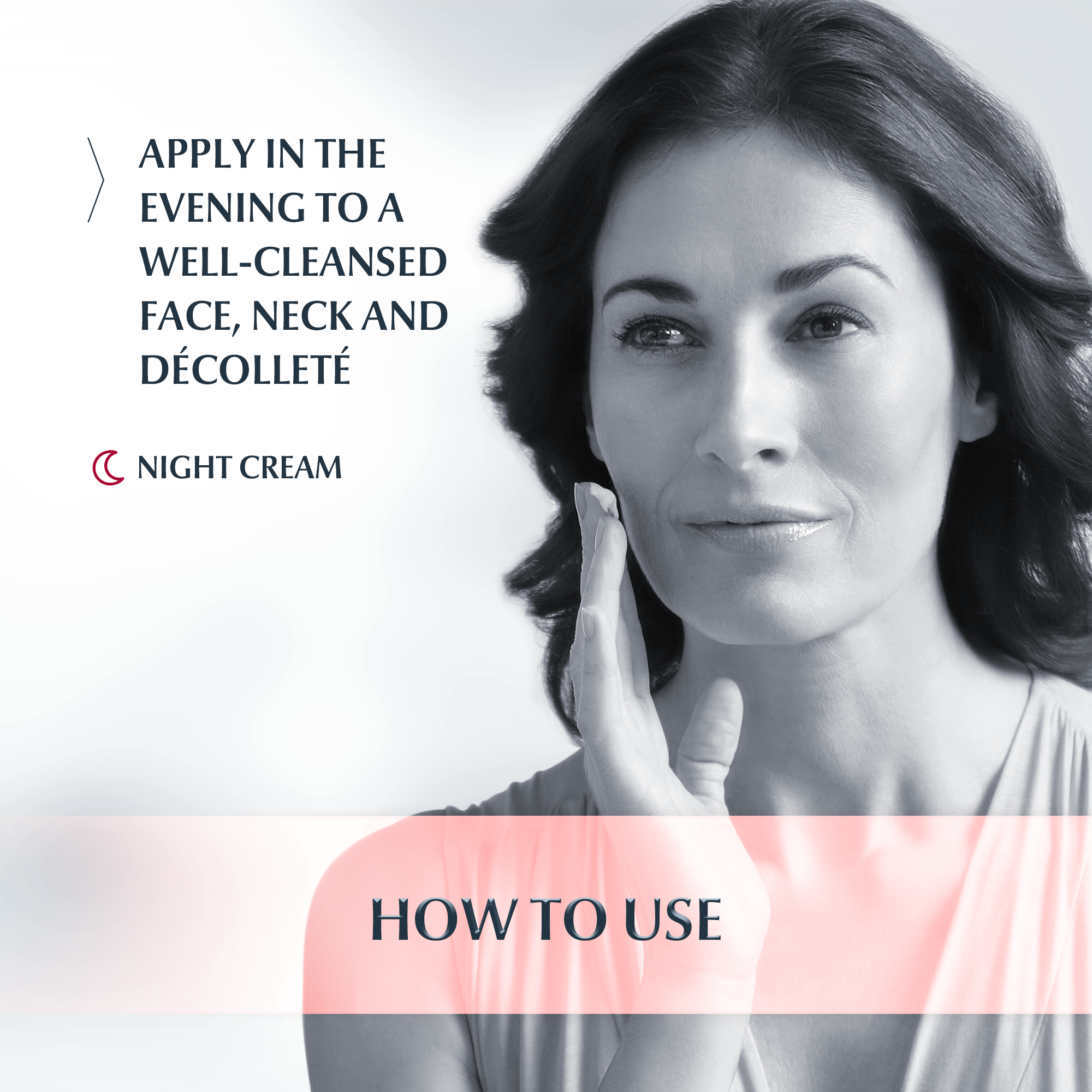 An anti-aging night cream with Magnolol, Oligo Peptides, Hyaluronic Acid and Dexpanthenol. Plumps up deep wrinkles and redefines facial contours for a lifting effect.