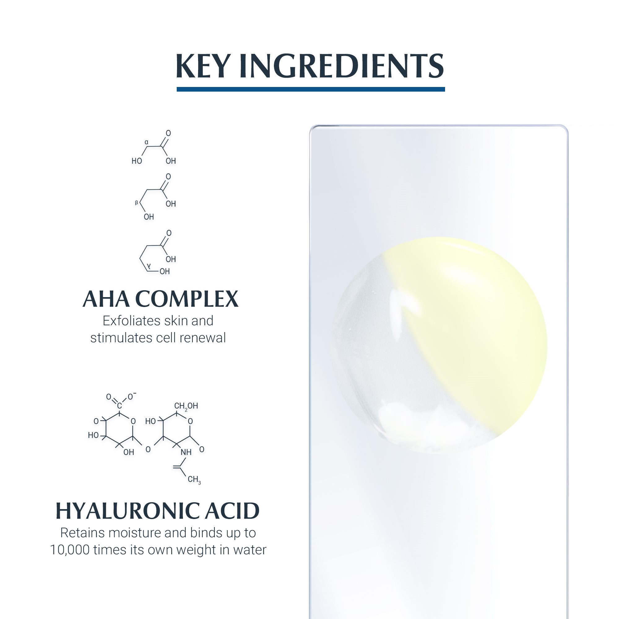 • A refined skin texture and radiance: The creamy emulsion contains an effective AHA (alpha-hydroxy-acid) Complex  and Glycine Saponin. AHAs, many of them known as Fruit Acids, exfoliate skin while Glycine Saponin supports the production of Hyaluronic Acid in the dermal layer where deeper wrinkles originate.