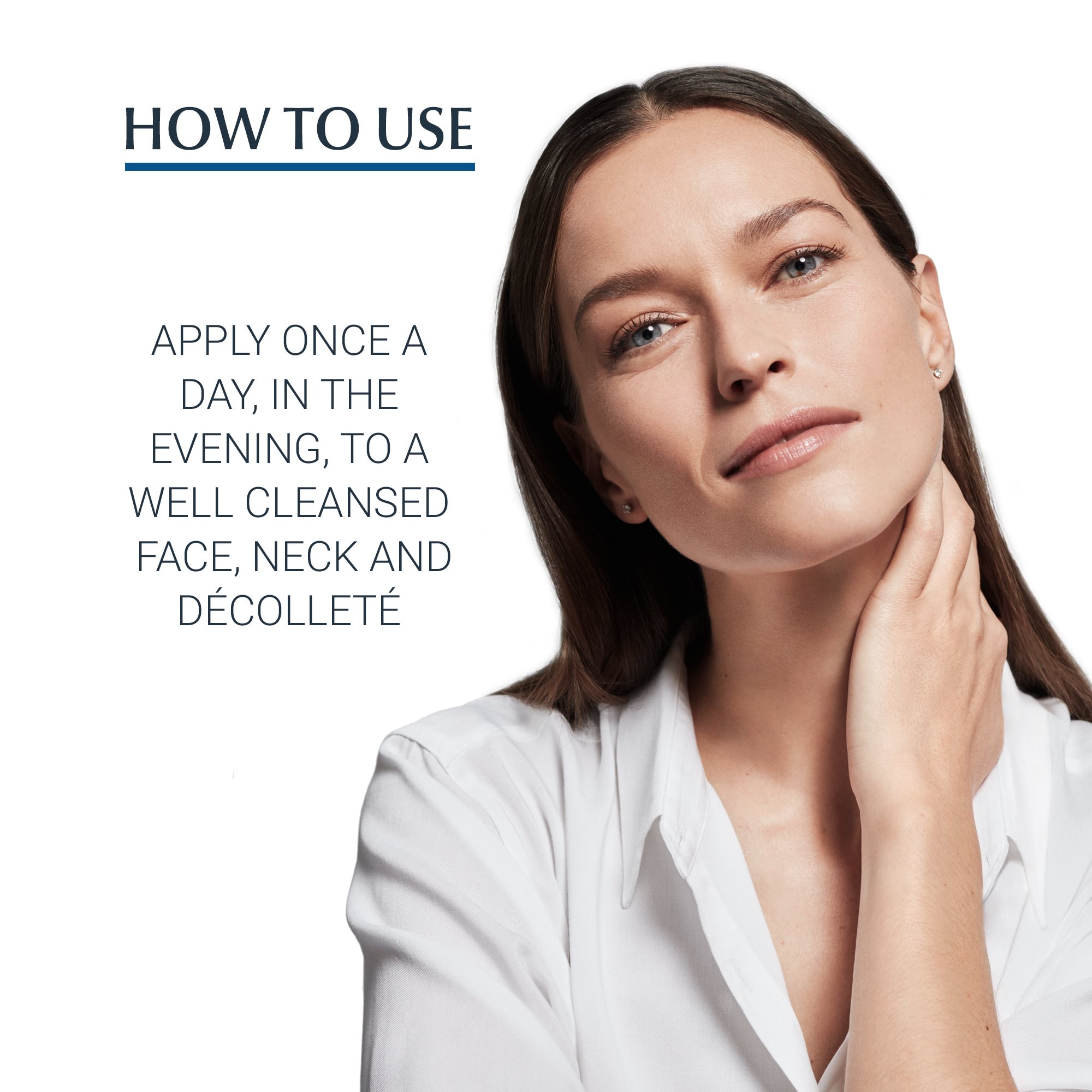 • Apply once a day, in the evening, to a well cleansed face, neck and décolleté