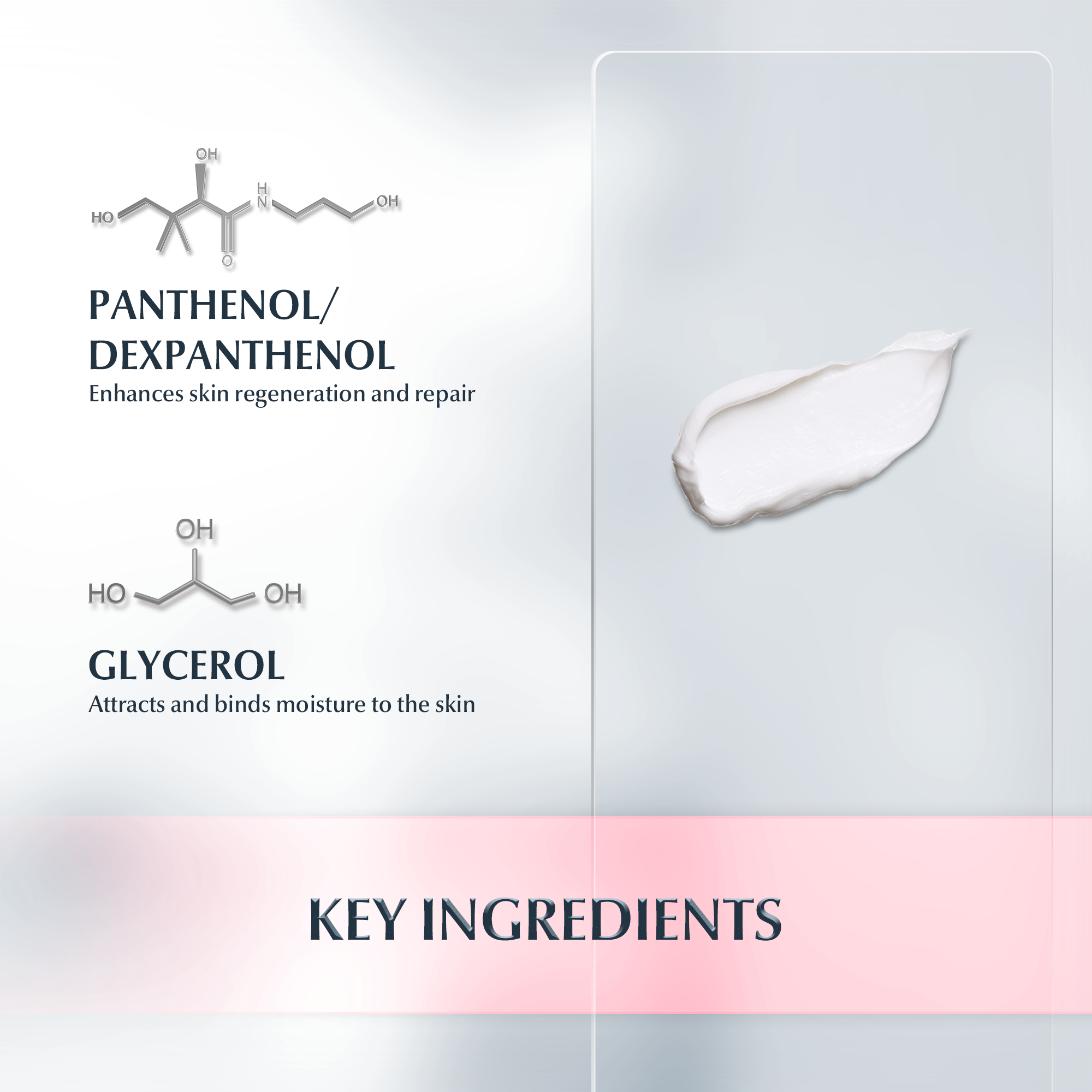 These include pH5 Citrate Buffer, to restore and support skin’s optimal pH, and Dexpanthenol, an active ingredient known for its regenerative properties. Dexpanthenol increases skin’s resilience to irritation, has wound healing properties, and leaves skin looking and feeling soft and smooth.