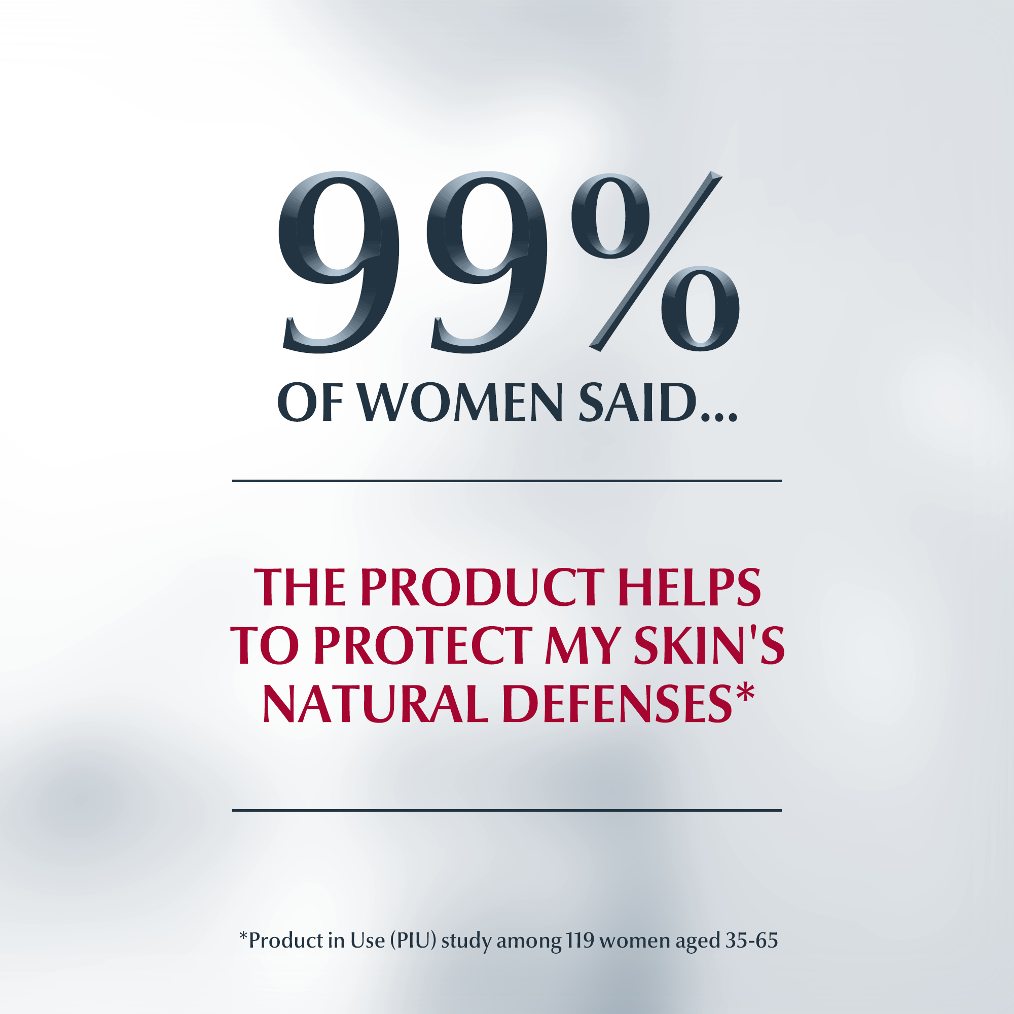 In addition to other clinical and dermatological studies, a Product-in-Use (PiU study)1 was conducted with 119 women with sensitive skin aged between 35 and 65. They reported the following results after two weeks of use: