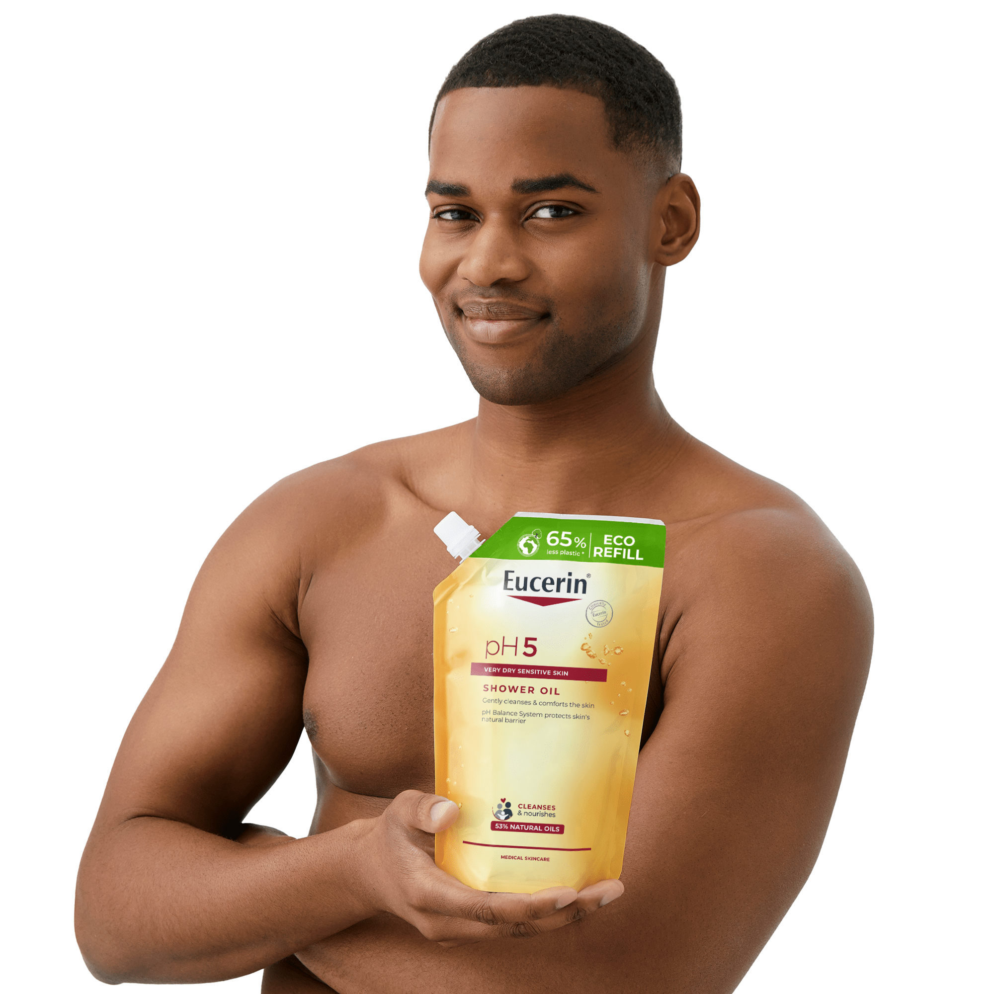 Sensitive skin needs gentle cleansing to resist daily stressors. Protect & comfort your skin with Eucerin pH5 Shower Oil and experience a new skin well-being. pH5 Shower oil with Caring Oils and Dexpanthenol cleanses gently and and respects the skin’s microbiome.