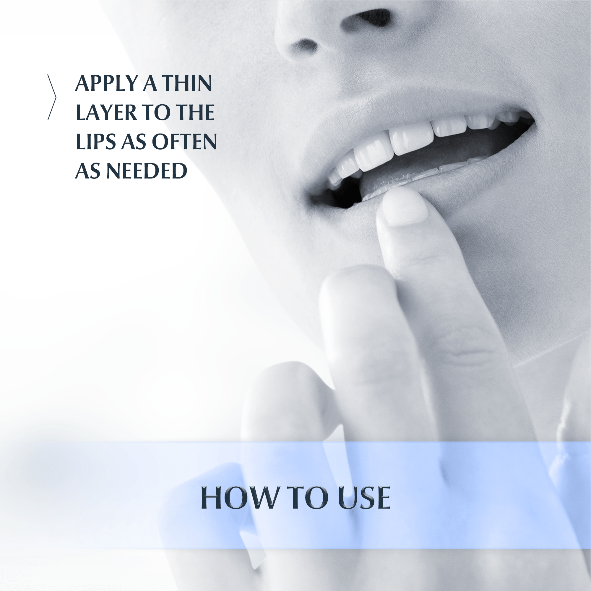 - Apply a thin layer of Acute Lip Balm to your lips.