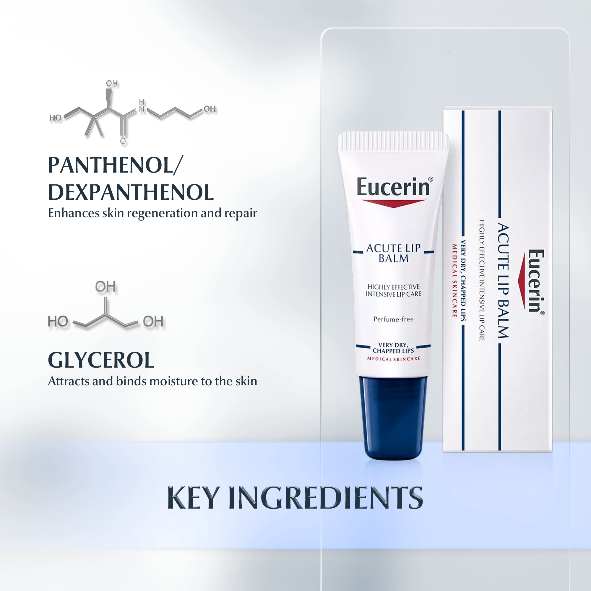 The unique combination of active ingredients in Eucerin Acute Lip Balm makes it a highly effective solution for extremely dry, cracked or chapped lips;