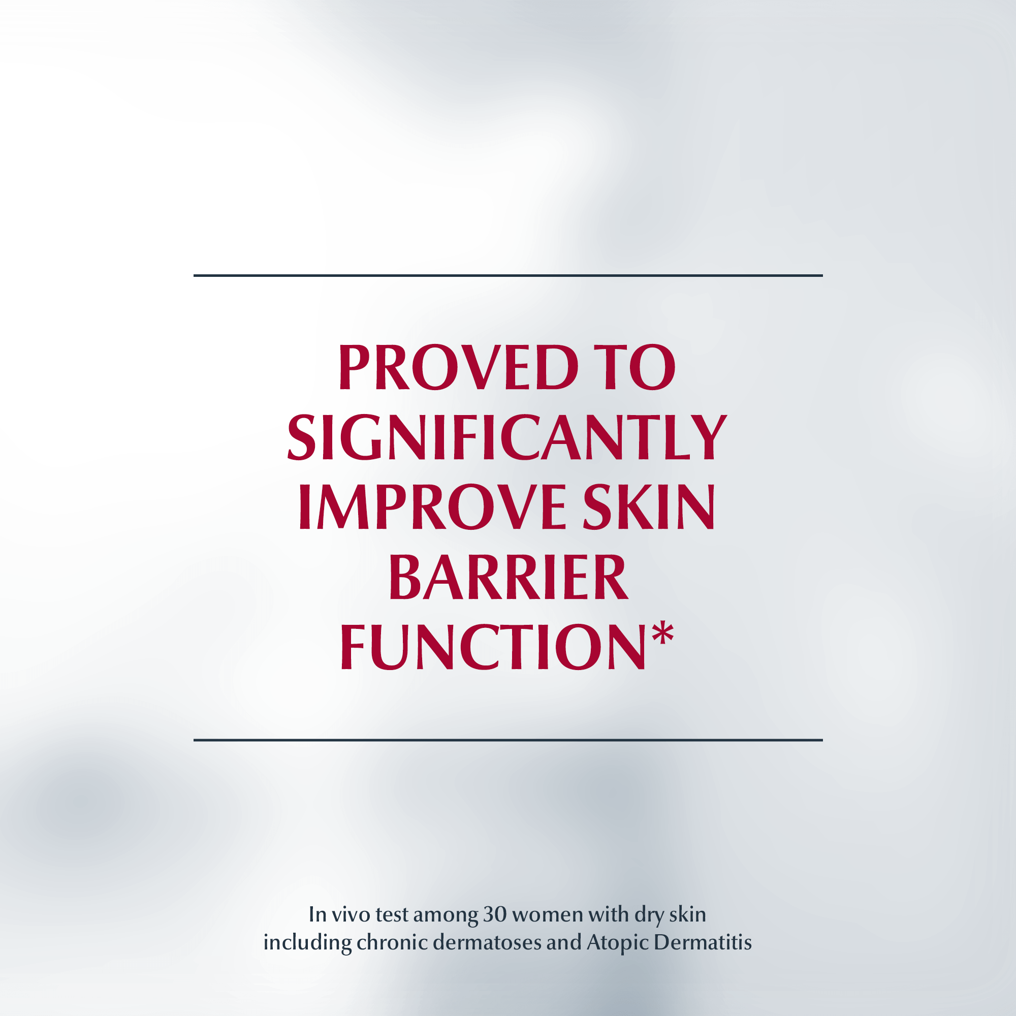 The efficacy of Eucerin UREA REPAIR Rich Face Cream, applied twice daily on the face for 2 weeks, was tested by 30 female patients with dry skin including chronic dermatoses and Atopic Dermatitis. Each patient’s facial skin was assessed by a physician at baseline and after 2 weeks of treatment.